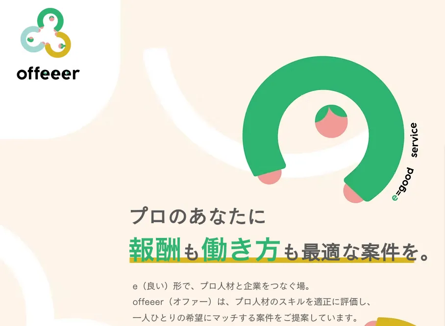 offeeer(オファー)は、一人ひとりに寄り添った案件提案と手厚い支援体制が特徴のエージェントです。スキルや経験だけでなく、将来のビジョンやライフスタイルを考慮した案件を提案してくれるため、自分に合った働き方ができます。