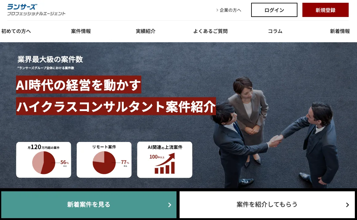 また、大手コンサルファーム出身者による手厚いサポートも魅力です。案件紹介だけでなく、企業との調整やトラブル対応などのサポートが充実しているため、安心して業務に専念できるでしょう。