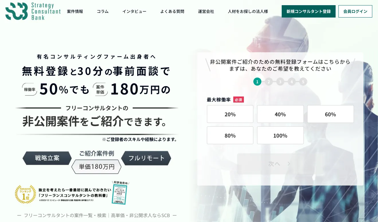 (ストラテジー コンサル バンク)は、有名コンサルティングファーム出身のフリーコンサルタントに特におすすめの案件紹介エージェントです。